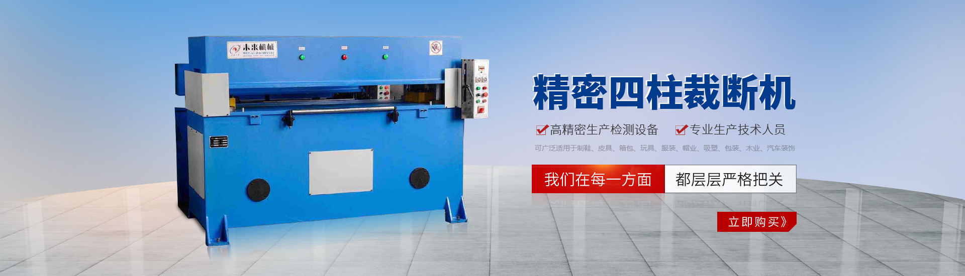 公司專業(yè)制造l 2T一25T液壓搖臂式裁斷機:25T一30T液壓平面式裁斷機;25T一30T液壓四柱龍門移動式裁斷機;25T一100T液壓四柱平面式裁斷機:30T一100T精密四柱式裁斷機(自動進料);100T一200T液壓四柱下壓式裁斷機(自動進料)和客戶要求的特型裁斷機械系列。產品規(guī)格齊全,可廣泛適用于制鞋、皮具、箱包、玩具、服裝、帽業(yè)、吸塑、包裝、木業(yè)、汽車裝飾等行業(yè)。